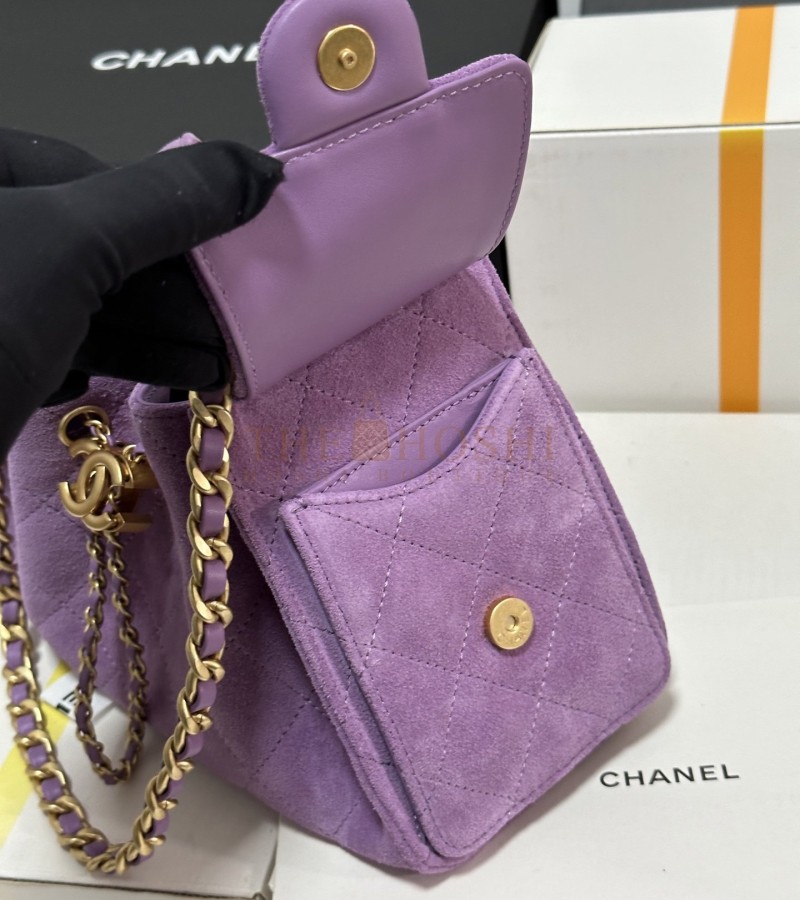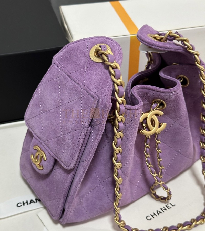 CHANEL 25C AS5631 HOBO DRAWSTRING BAG PURPLE SUDE LEATHER WITH GOLD CHAIN 22*12.5*20CM MASTER QUALITY