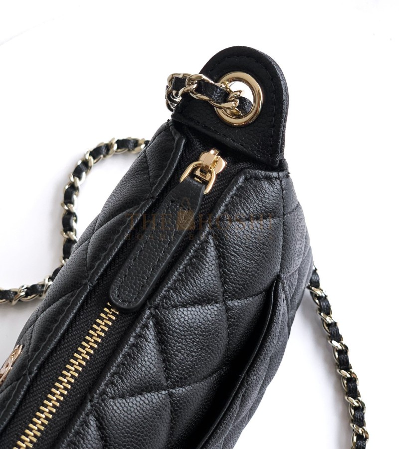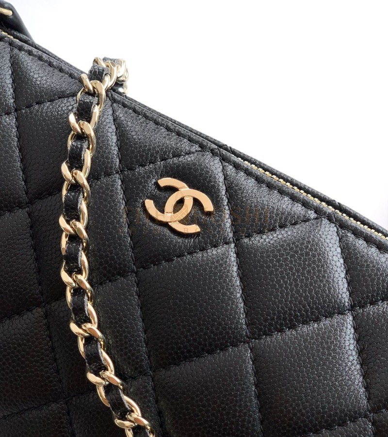 CHANEL 25A CLUTCH ON CHAIN BAG BLACK CAVIAR LEATHER SIZE 21×12×5.5CM
