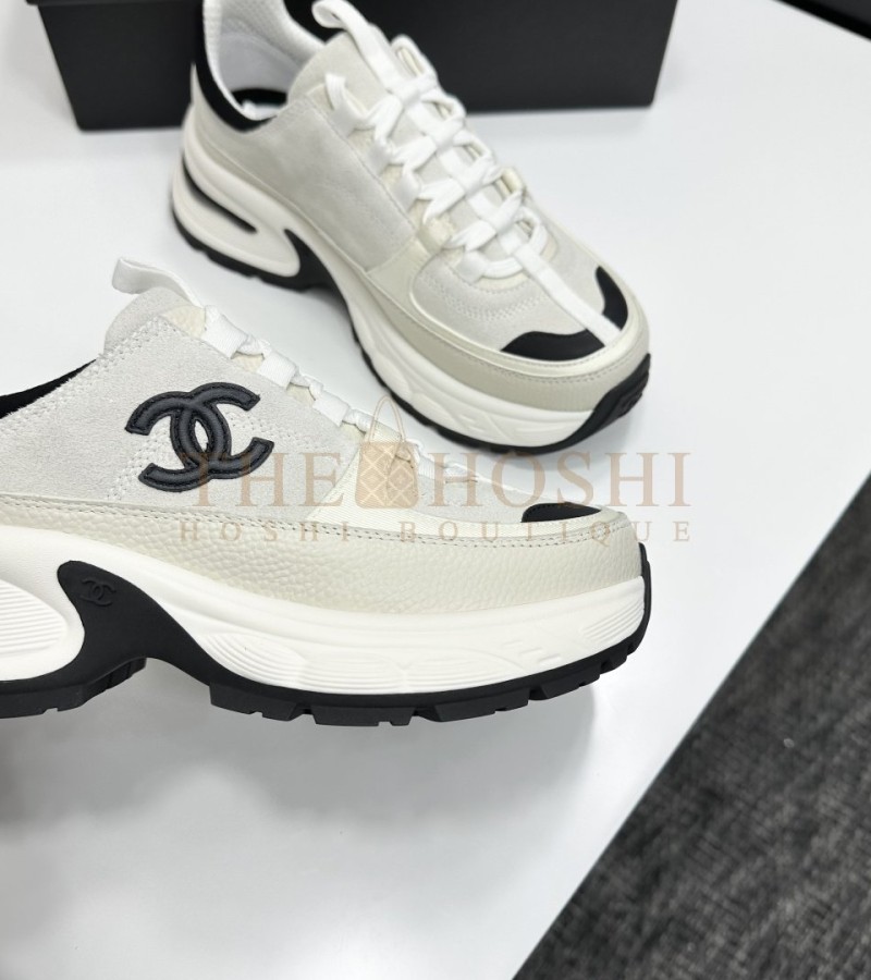 CHANEL SNEAKERS MIXED CALFSKIN & TECHNICAL FABRIC BLACK/WHITE WOMEN'S SIZE 35-42